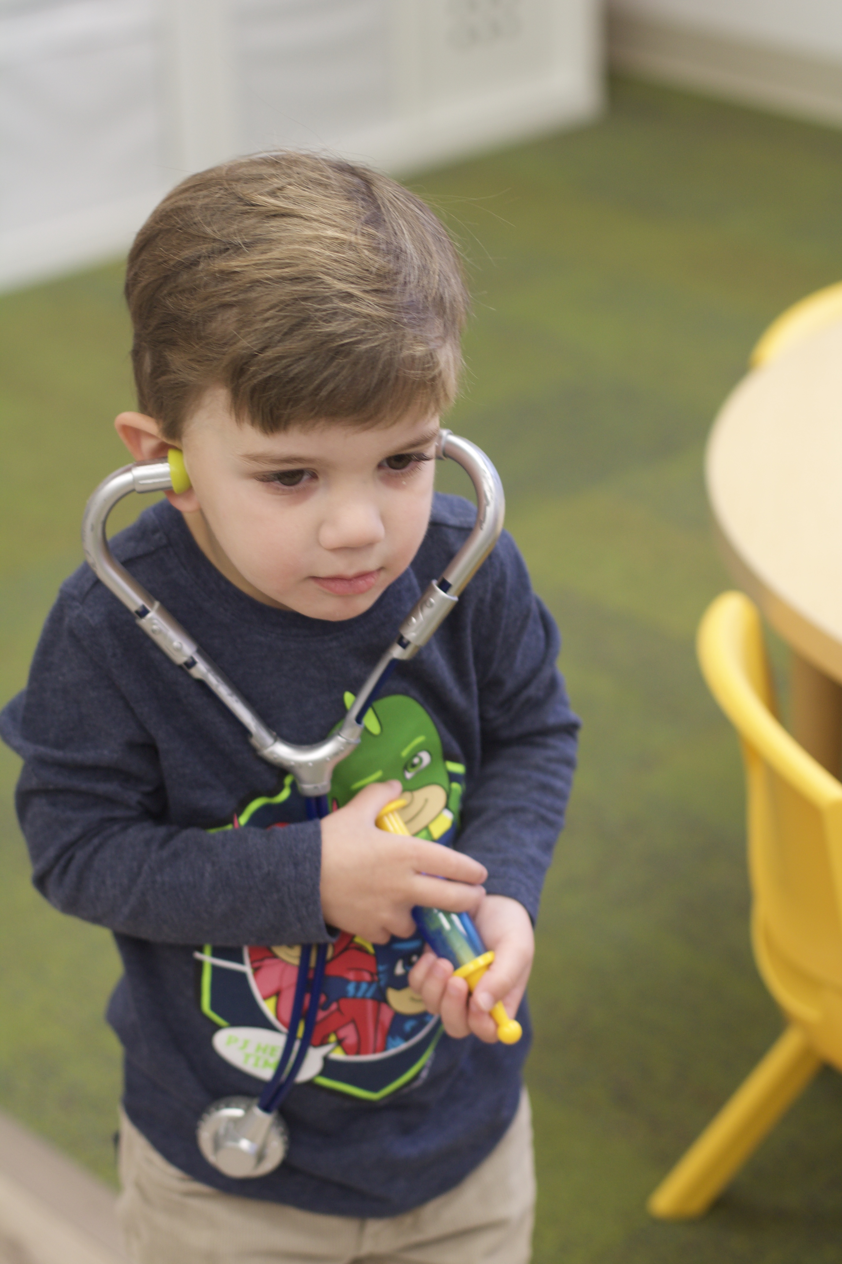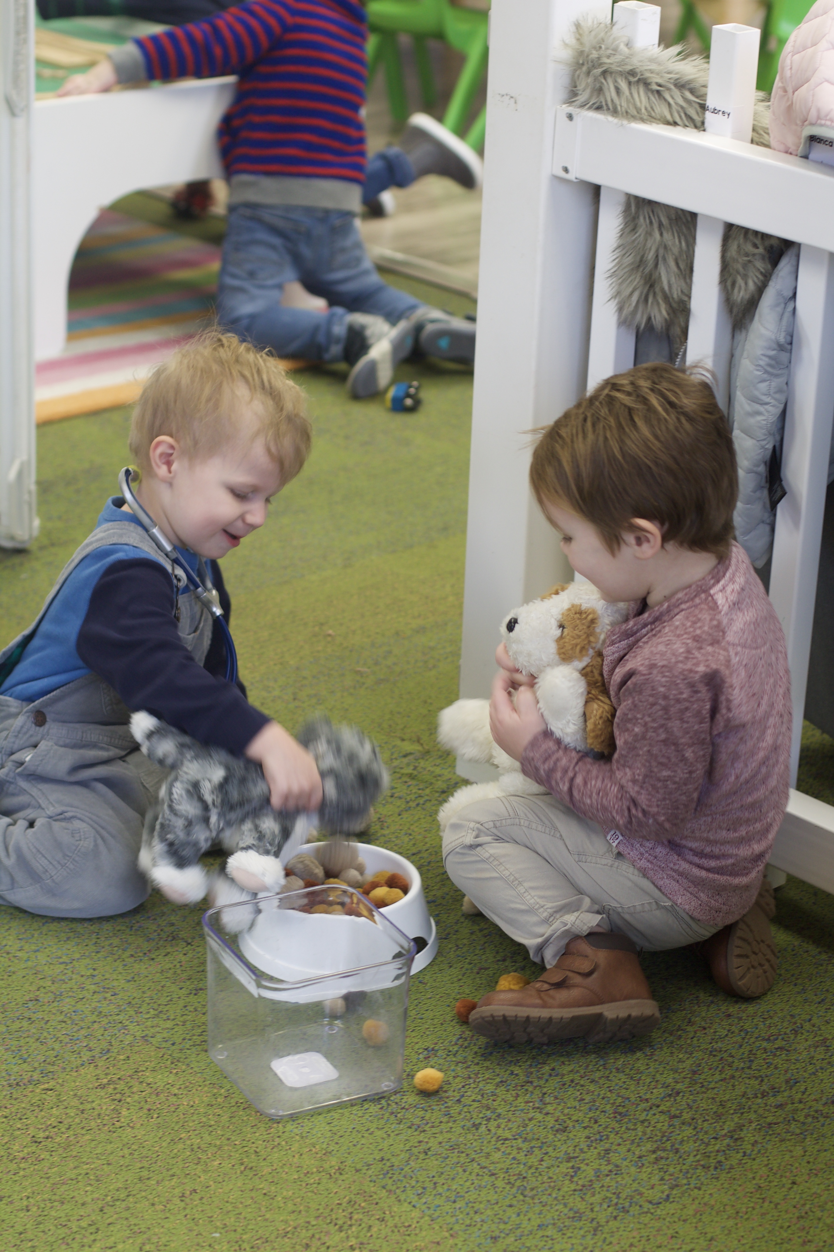 Our pretend veterinary office has provided fun interaction and vocabulary.  The children love to pretend to take care of and feed the animals.